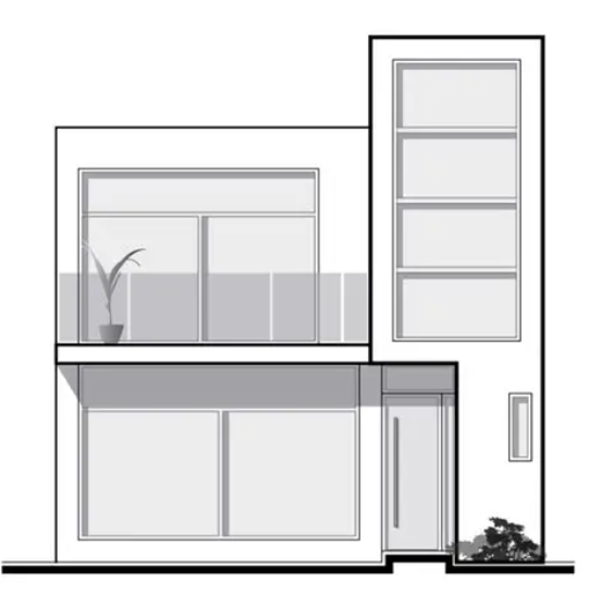 En el cuadeno realizar el dibujo de la siguiente fachada con colores.