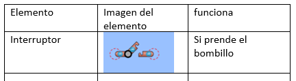 En el cuaderno y utilizando el simulador, realizar la actividad siguiendo las indicaciones del docente, y realizar una tabla con dibujos de los elementos utilizados en el cuaderno